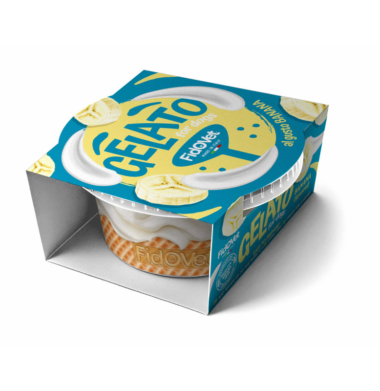 The dog food "Fidovet - Gelato Banana" offers a refreshing and tasty way to pamper your four-legged friend on hot summer days. Made in Italy, this product combines the creamy consistency of milk with the tropical sweetness of banana. It is not only a delicious snack but also a nutritious treat specifically designed for the needs of dogs. The easy preparation allows you to mix it with water, freeze it, and then serve it as a cool treat. This healthy and flavorful option ensures that your dog stays well-hydrated and satisfied during the warm months.