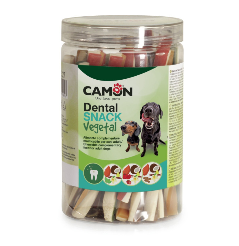 Delicious vegetable snacks in the form of twisted sticks, a chewable complementary food for dogs, very useful also for dental cleaning.